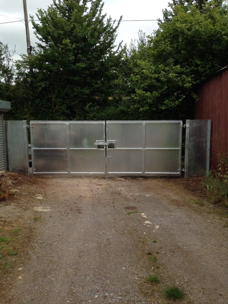 Secure entrance gates, clad with galvanised sheets steel in Taunton